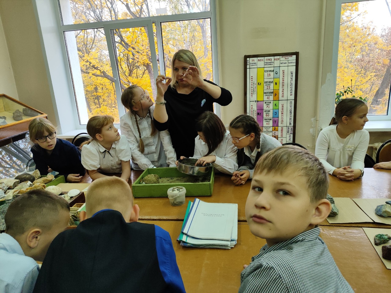 Наука 0+. Школьники из гимназии 53 Пензы познакомились с минералами и горными породами, определили цвет черты и твердость некоторых минералов, посетили пещеру, постарались в отложениях обнаружить зубы древних рыб! Фотоматериал Лисицыной А. А.